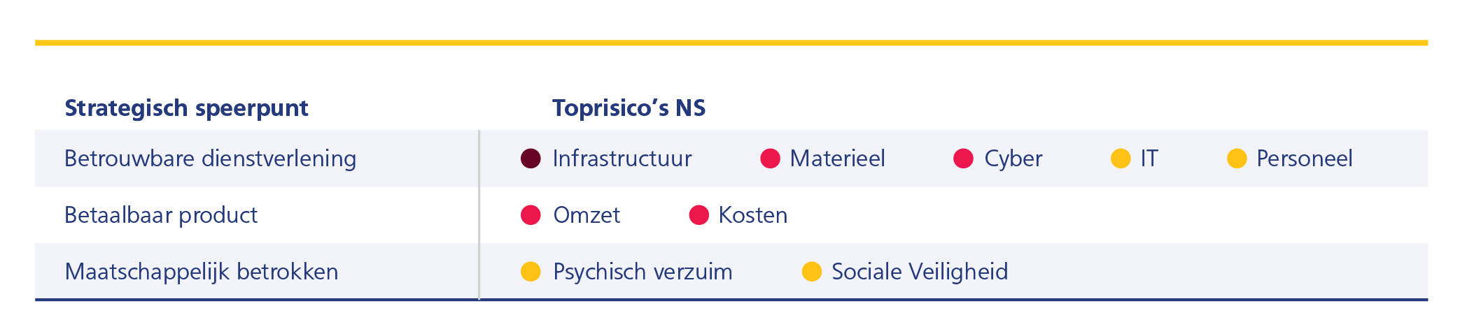 Naast deze strategische / externe risico’s kent NS risico’s die direct de bedrijfsvoering raken.