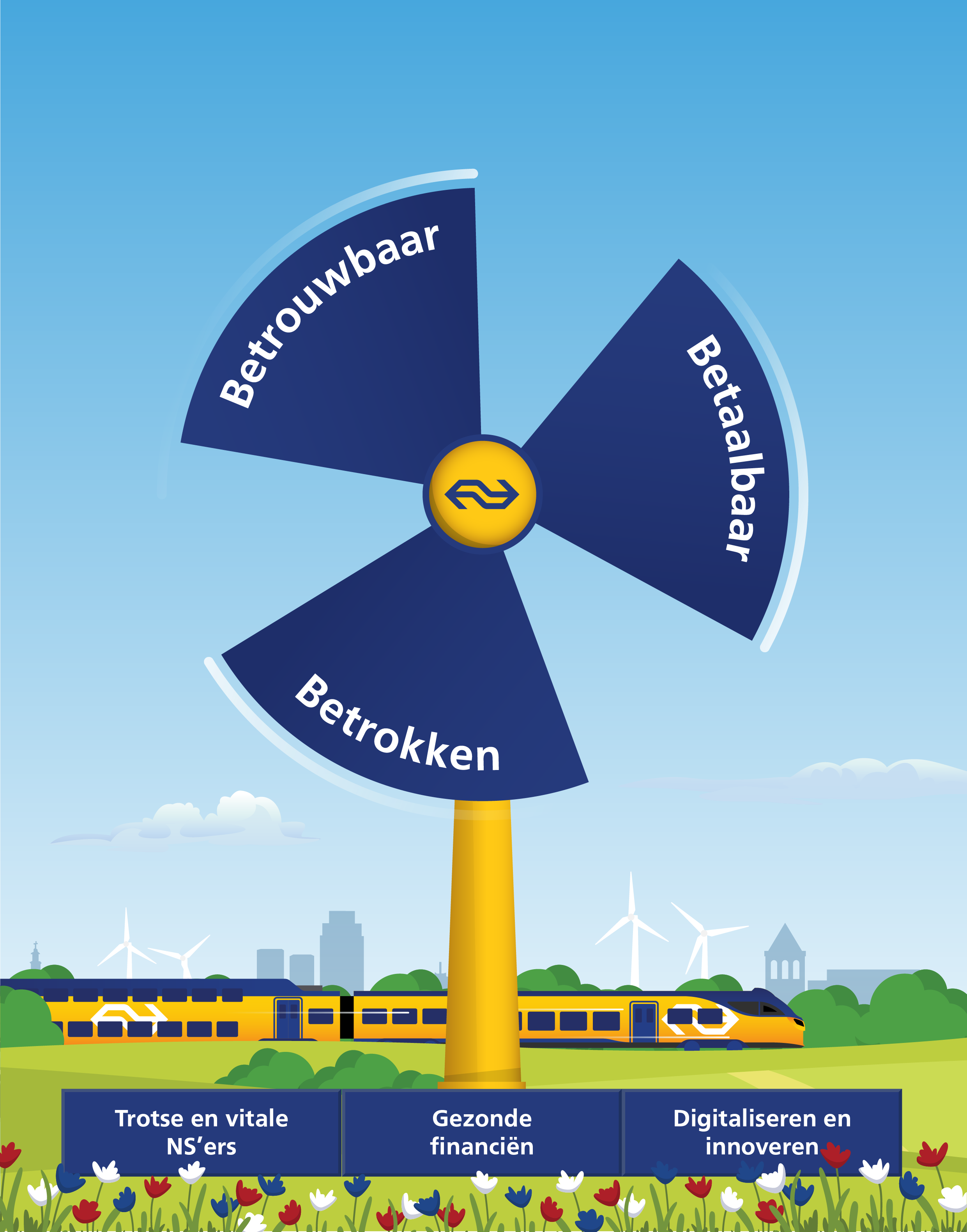 Inzetten op betrouwbaar, betaalbaar en betrokken voor onze reizigers en Nederland kunnen we alleen maar met onze mensen. Voldoende trotse en vitale NS’ers zijn essentieel voor de toekomst van NS.