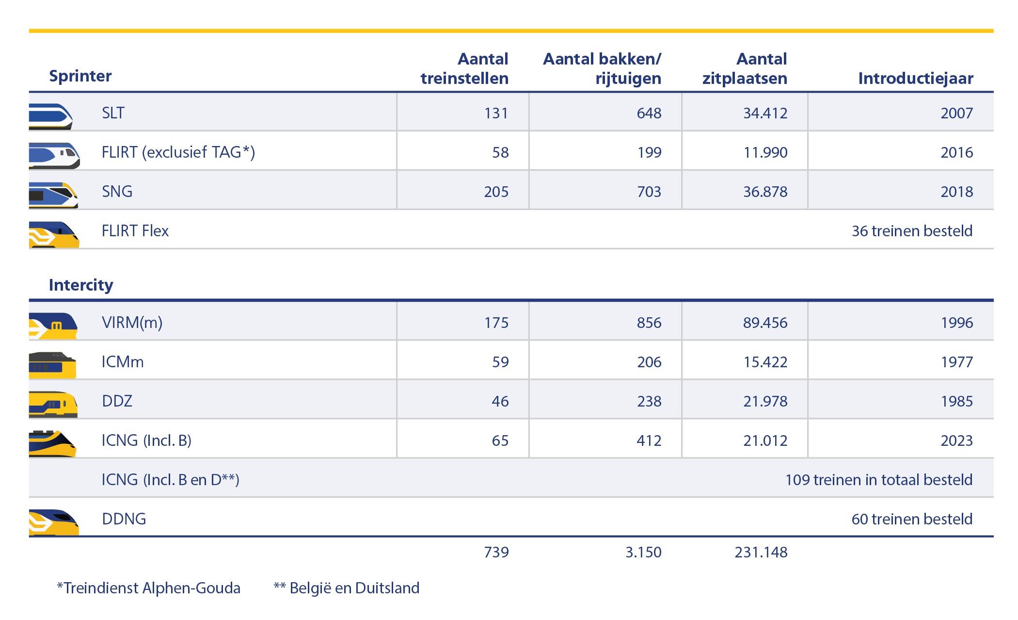 Sinds 2016 heeft NS 109 Intercity's Nieuwe Generatie (ICNG) besteld bij treinfabrikant Alstom. Hiervan zijn 77 treinen bestemd voor inzet in Nederland en 32 ook geschikt om door te rijden naar België of Duitsland. Eind 2025 zijn 65 ICNG’s geleverd.